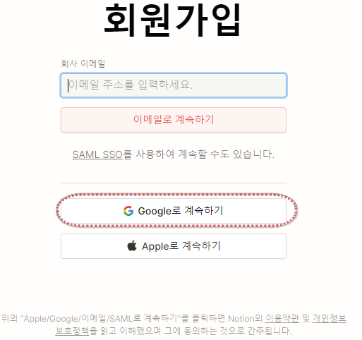 단, 노션은 구글기반이라 구글 계정 하나를 만드시는 걸 추천드립니다.