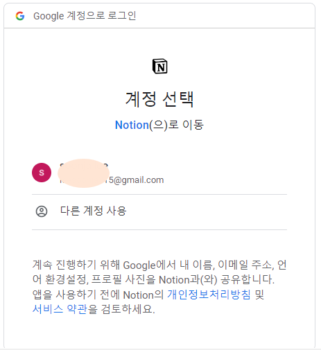 계정을 선택하면 바로 가입은 됩니다. 이제 노션 가입의 90%를 진행하셨습니다..