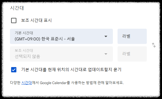 - 일정 추가 시 "시간대" 옵션에서 변경 가능