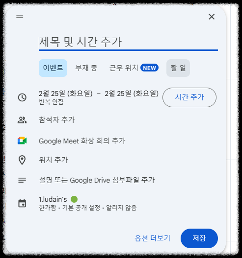 - 제목, 날짜, 시간 입력 후 "저장" 클릭