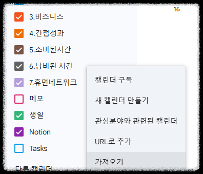 - 좌측 메뉴에서 "캘린더 추가" 클릭