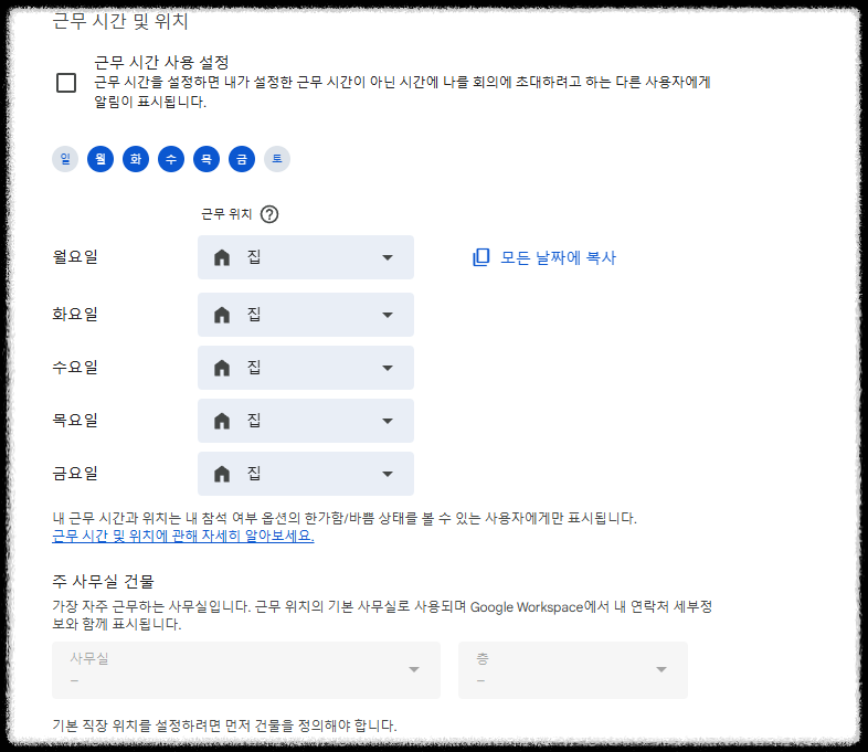 3) 업무 시간 설정 및 회의 시간 자동 추천