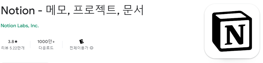 구글 플레이 스토어에 가셔서 노션 또는 Notion을 검색하시면 아래 이미지를 찾아 설치만 눌러주시면 끝!