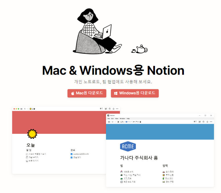 저는 개인용 다이어리로, 업무용 프로젝트용으로 노션을 사용하고 있습니다.