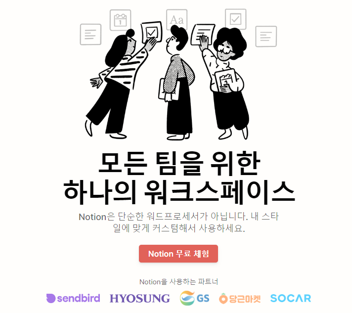 먼저 노션 홈페이지에서 Notion 무료 체험 을 눌러주세요.