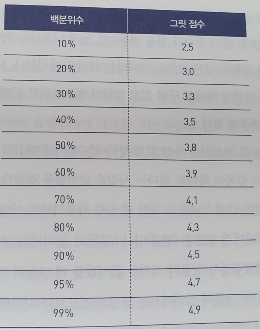 저는 다행인 건지, 평범한 건지^^ 그릿평가표 분포에서 연령에 맞는 그릿 점수가 나왔네요^^