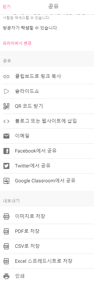 공유 : 링크 복사로 외부와 공유 가능, 이미지, pdf로 저장 내보내기